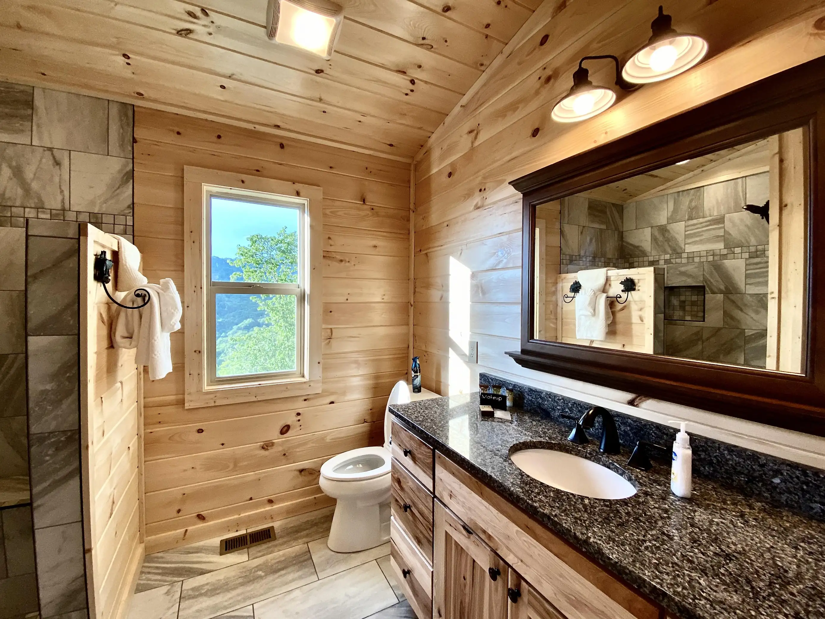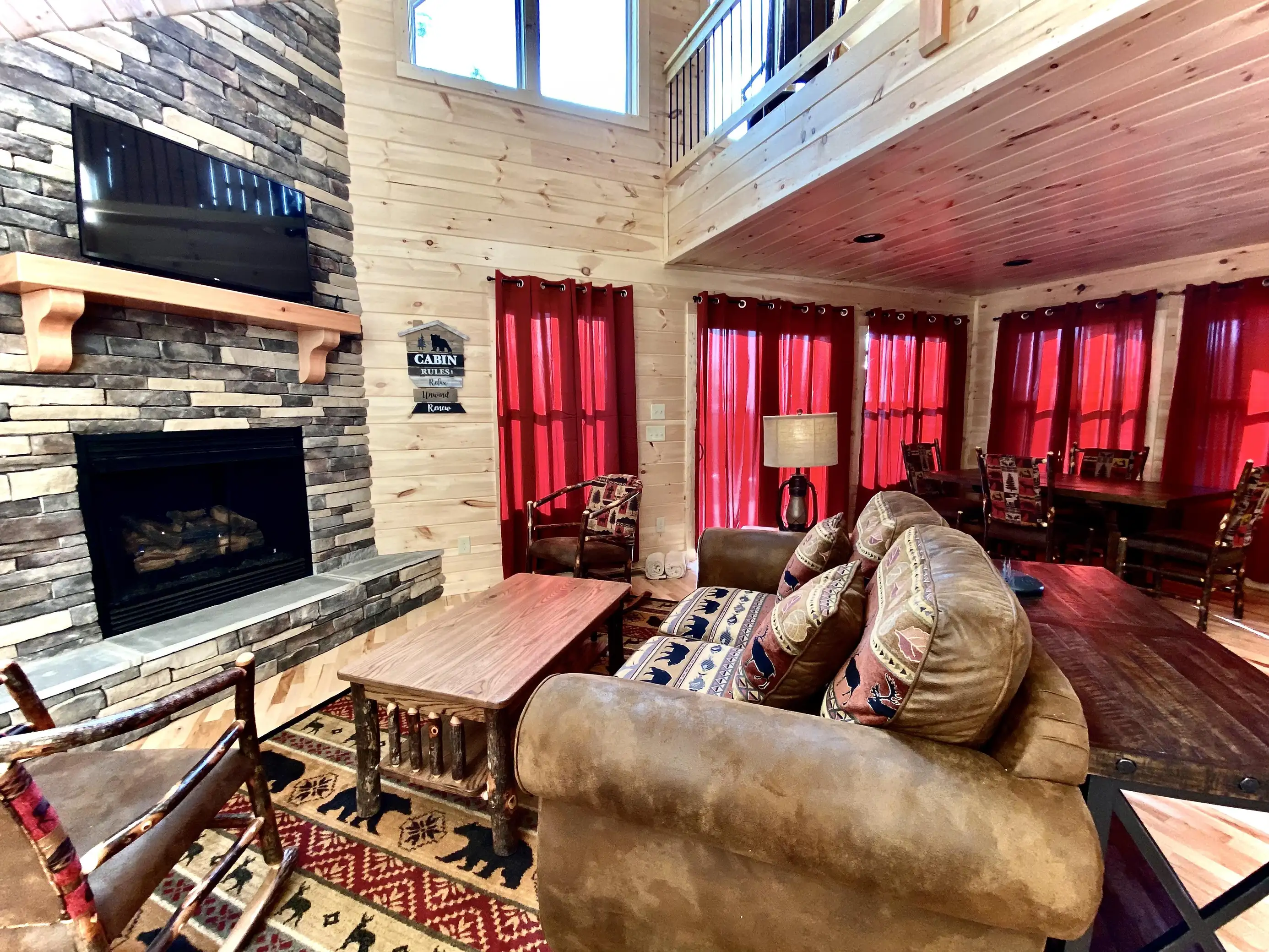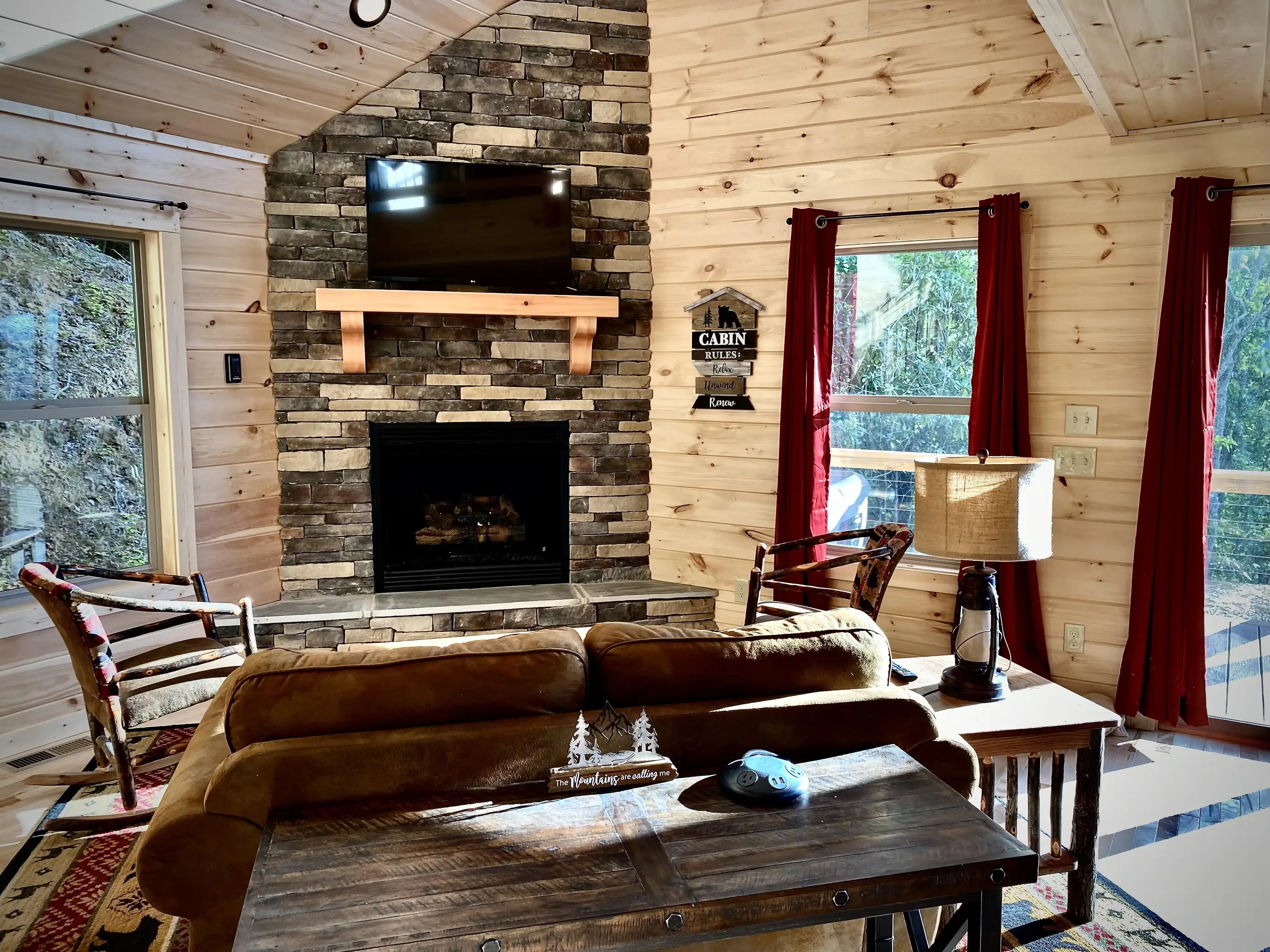 “Bryson’s Paradise” was constructed thoughtfully and with your Comfort and Relaxation in mind. From the moment you step inside, you are sure to be captivated by the warm wood interior, rock fireplace, a wall of glass, and rustic modern decor.